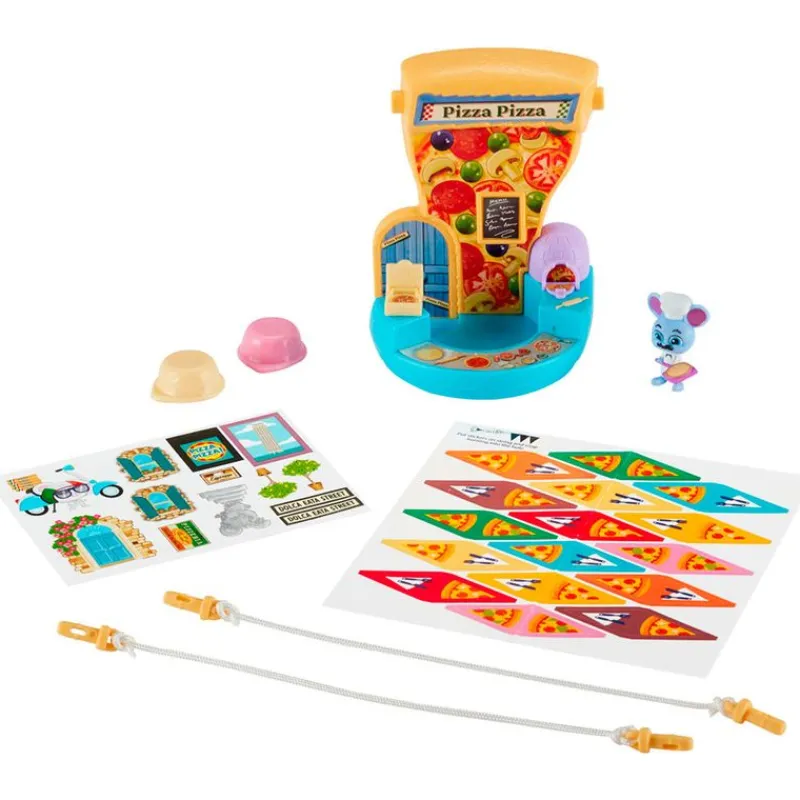 Pack en el que encontrarás la pizzería de Regi, de la serie de animación Mouse in the House. Dispone de horno, mostrador, asientos, cuerdas de banderines y pegatinas para decorar. Contiene la figura de Regi el ratón pizzero. Recomendado a partir de 3 años.
