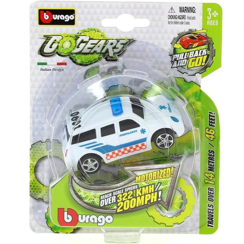Ambulancia, con acción por retroceso, de la colección Go Gears. Recorre hasta 14 metros de una vez. Recomendado a partir de 3 años.