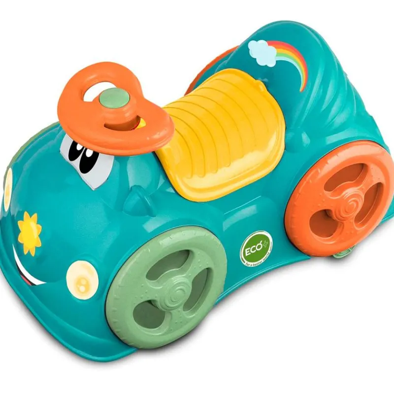 All Around ECO+ es el correpasillos con ruedas giratorias 360º que garantiza la libertad de movimiento en todos los sentidos. Está fabricado en un 75% de plástico reciclado, tiene claxon en el volante, un compartimento bajo asiento para guardar los juguetes de los más pequeños de la casa y muchas pegatinas divertidas para personalizarlo. Recomendado a partir de 1 año.