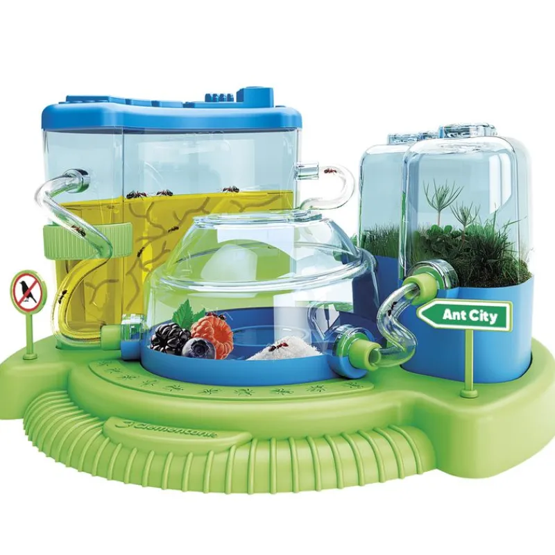 Pack de la colección ciencia y juego con el que podrás recrear el hábitat de las hormigas y observar su comportamiento. Obsérvalas mientras se alimentan y excavan sus túneles. Contiene un manual ilustrado incluido. Contiene un área donde las hormigas pueden cavar túneles, un módulo de botánica para observarlas sobre el suelo y una sección dedicada a comprender cómo se alimenta. Los módulos están conectados entre sí por un tubo transparente a través del cual las hormigas pueden moverse fácilmente entre los entornos. Recomendado a partir de 7 años.