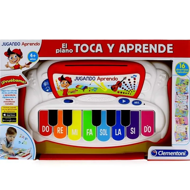 Piano toca y aprende con el cual los niños podrán practicar la música, gracias a sus 8 tarjetas aprenderán a tocar 16 melodías, también tiene la opción de grabar sus propias creaciones.