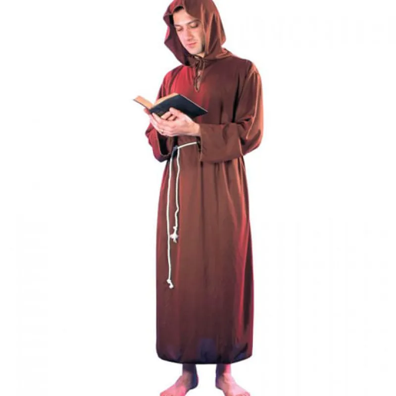 ¡Disfraz de monje para este carnaval! Incluye el hábito. Es largo hasta los pies y de un característico color marrón. NO incluye libro.Talla 56 (Altura 182cm, pecho 112cm, cintura 104cm, Talla XL) orientación aproximada.
