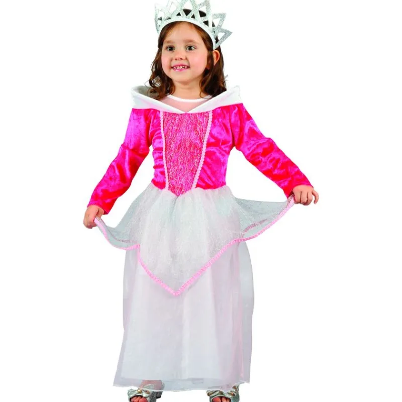 Disfraz de princesa durmiente de niña compuesto por un vestido largo con corona. NO incluye el calzado. Talla XXS (Altura 80-92cm, pecho 54cm, cintura 51cm, 1 a 2 años) orientación aproximada.