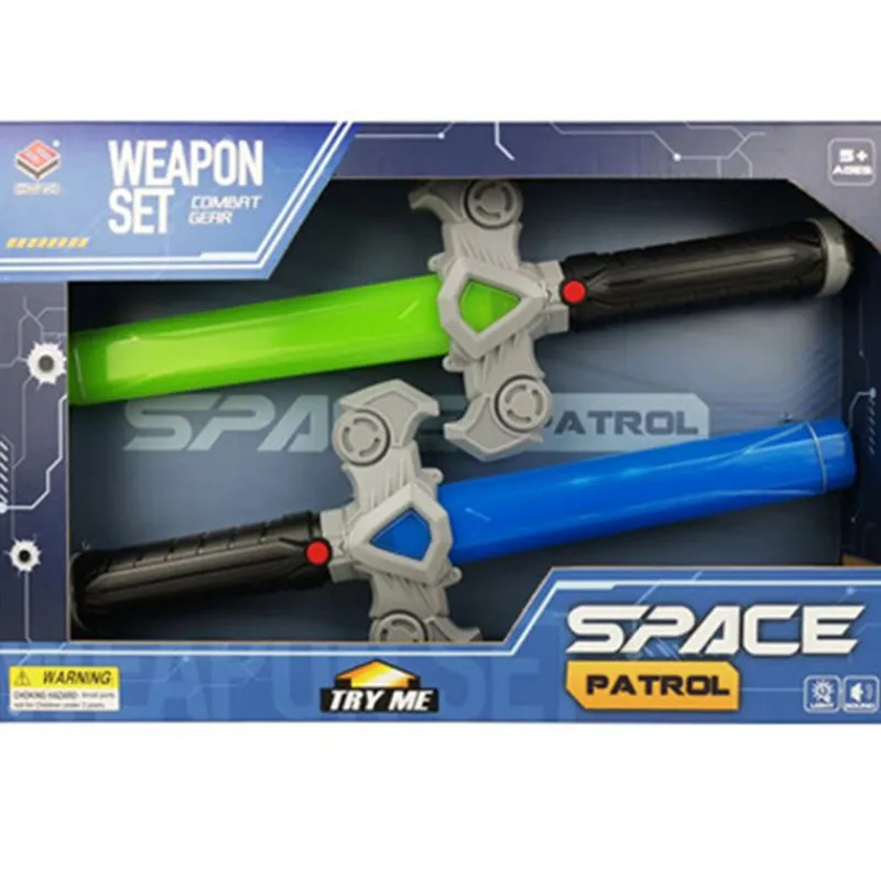 Pack en el que encontrarás 2 espadas que reproducen luces y sonidos. Cada espada tiene un tamaño de 73 cm x 5 cm aproximadamente, pero podrás unirlas para que midan 146 cm aproximadamente. Funciona con pilas incluidas. Recomendado a partir de 5 años.