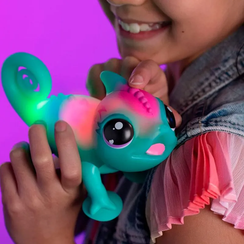 Sunny es un camaleón interactivo de la colección Little Live Pets ¡Descubre las mascotas que cobran vida, se mueven, actúan y suenan como si fueran de verdad! Sunny se ilumina cambiando de color para expresar su estado de ánimo ¡Reproduce hasta 30 sonidos diferentes y responde cuando le hablas! Canta y brilla. Dispone de 2 modos de juego diferentes, el modo alimentación y el de diversión ¡Agítalo para que comience la fiesta! Funciona con pilas incluidas (pilas de demostración). Recomendado a partir de 5 años.