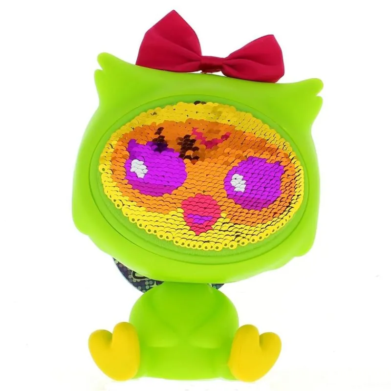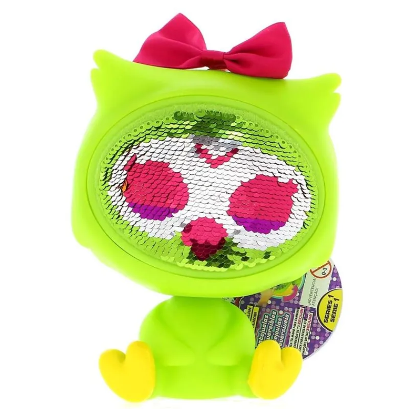 Emmy es una preciosa buhita de un llamativo color verde y con un gracioso lacito. En su carita tiene lentejuelas, podrás cambiarlas de sentido para ver una nueva y adorable expresión ¡Podrás coleccionar los 6 modelos diferentes de la colección! Recomendado a partir de 3 años.
