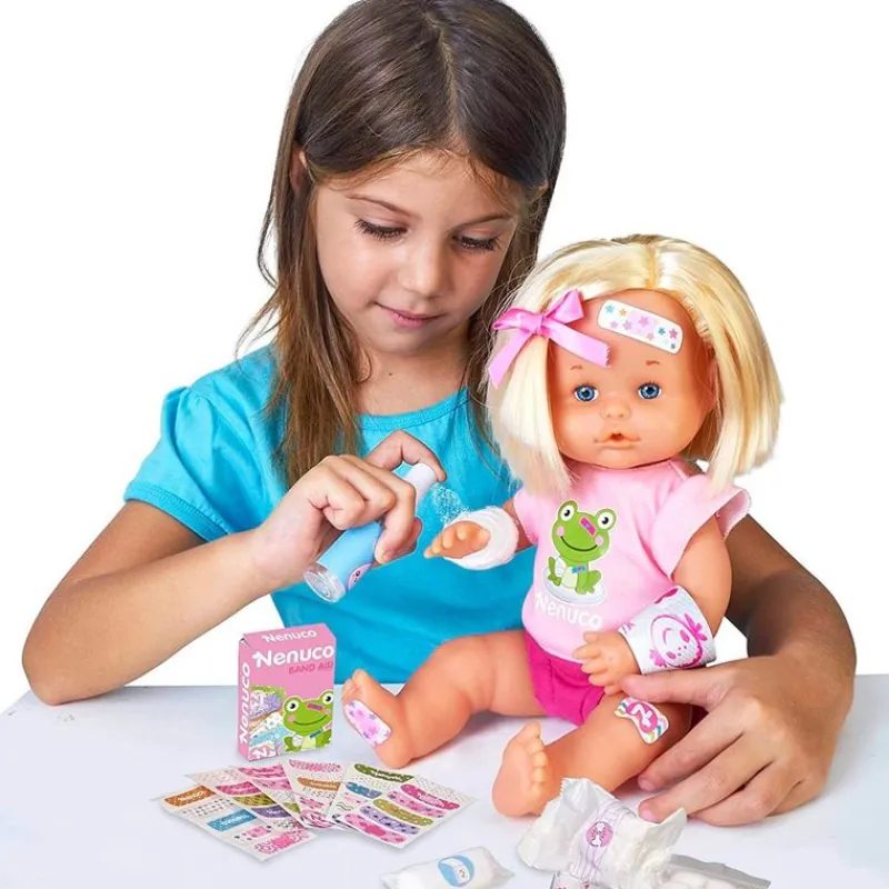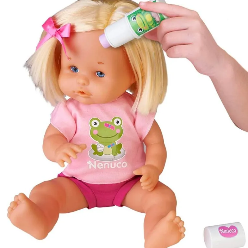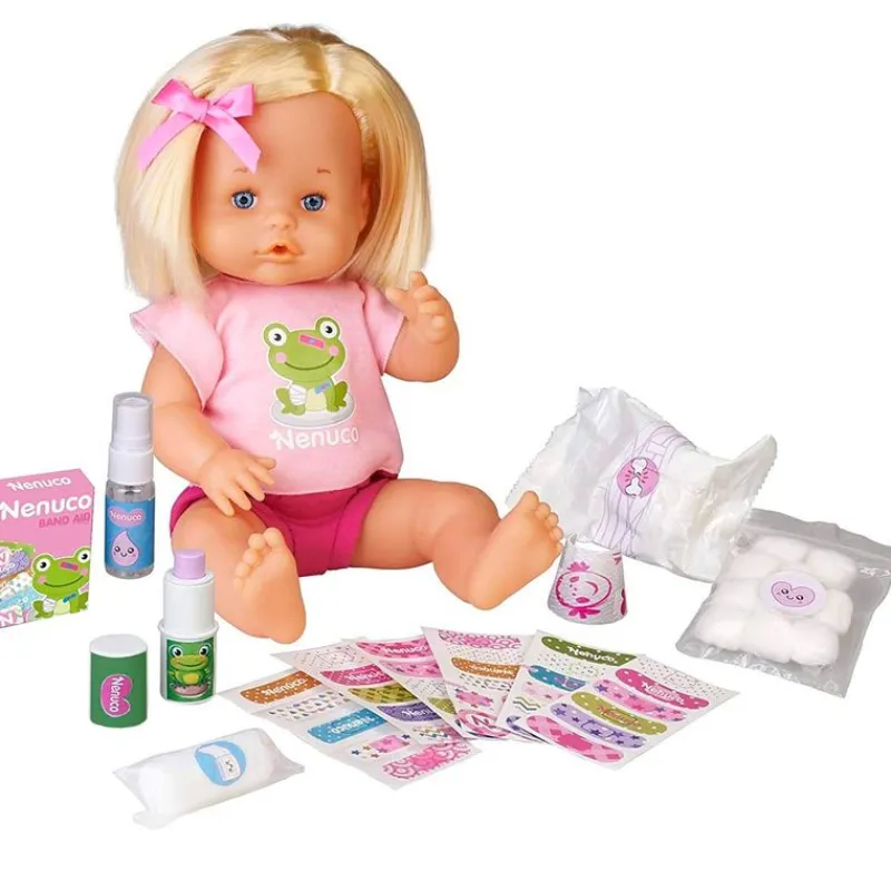 Nenuco Cura Sana es el muñeco bebé más completo con todos los accesorios necesarios para cuidarle cuando se haga daño. En el interior encontrarás tiritas para los golpes, una venga, algodones con los que limpiarle las heridas, un stick antichichones y una venda que al echar agua se convierte en una escayola de verdad. La muñeca tiene un tamaño de 35 cm aproximadamente. Ideal para el desarrollo de la motricidad y la coordinación, la destreza manual y la sociabilidad. Recomendado a partir de 3 años.