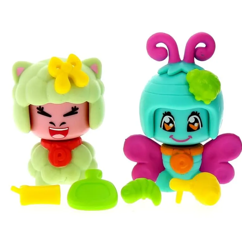 Con estas figuras podremos mezclar y combinar sus pelos, sus caras y cuerpos. Al igual que las figuras, se pueden cambiar sus expresiones gracias a la doble cara. Cada pack incluye dos mascotas y muchos accesorios.