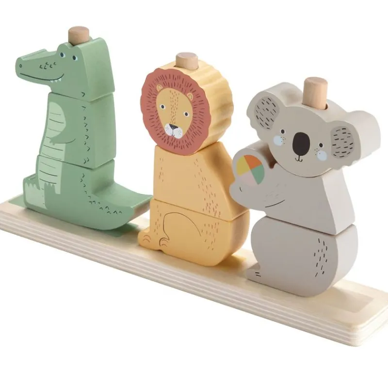 Los niños pueden apilar las piezas en la base para hacer un cocodrilo, un león, un koala o cualquier criatura que puedan imaginar.