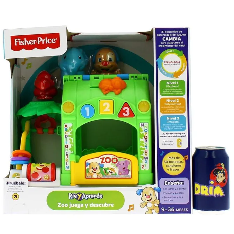 Este divertido zoo enseña las letras, a contar, las formas y colores y los animales y sus sonidos. Incluye más de 50 melodías, canciones y frases. Las figuras se pueden guardar dentro de la casa y, con el asa de transporte, puedes levarte el juego a todas partes. Edad recomendada a partir de 9 a 36 meses.