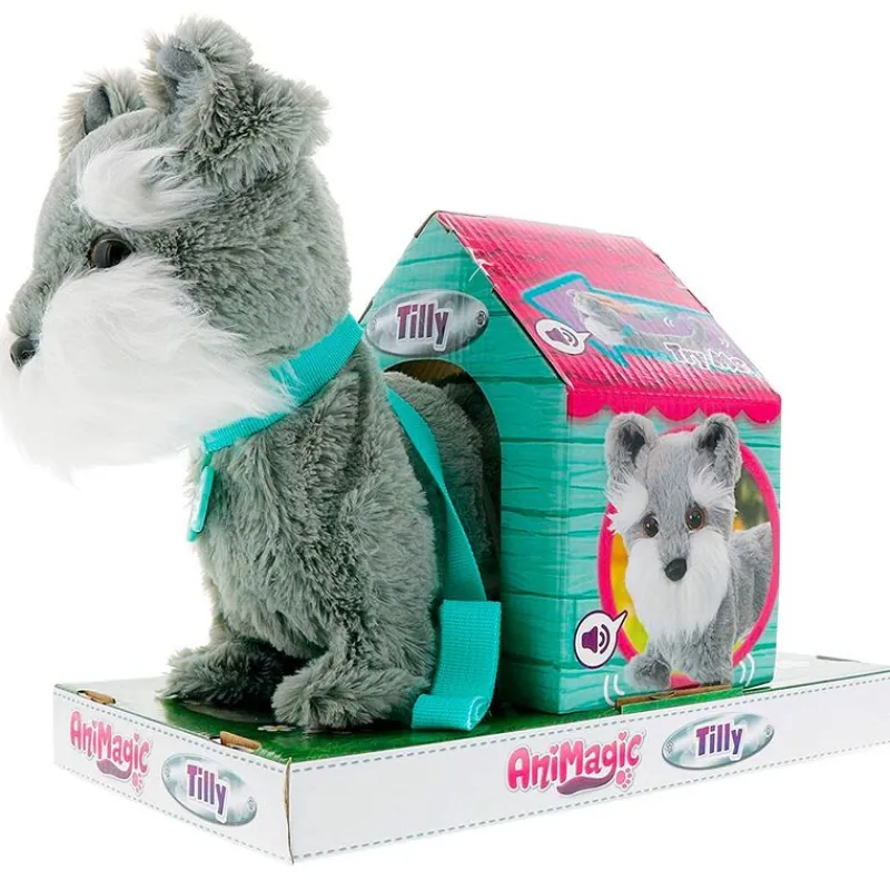 Tilly es el cachorrito de la colección Animagic más adorable y cariñoso ¡Le encantan los mimos! Acaricia su cabeza para ver como ladra ¡Le encanta pasear! Cuando lo saques a pasear con su correa se pondrá muy feliz y andará alegremente moviendo la colita. Funciona con 4 pilas AA incluidas (pilas de demostración). Recomendado a partir de 3 años.