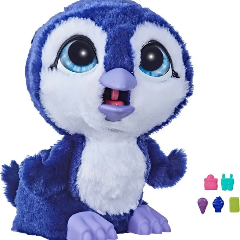 Adorable peluche interactivo en forma de pingüino de la colección Furreal Friends. Contiene 5 accesorios en forma de golosina para que puedas alimentarlo y dale de comer directamente en su boca ¡Al hacer caca las golosinas volverán a salir y podrás volver a jugar! Le encanta que ala acaricien y reproduce más de 40 sonidos y reacciones diferentes. Funciona con 3 pilas AA NO incluidas. Recomendado a partir de 4 años.