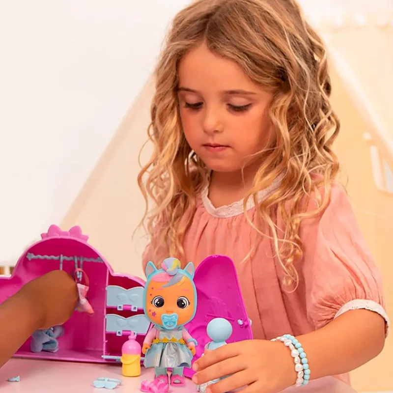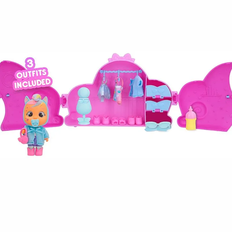 ¡El armario de Jenna está lleno de sorpresas para ti! Contiene perchas y espacios para los zapatos, lugares para los accesorios y la ropa de los bebés llorones. Incluye 16 sorpresas y accesorios compatibles con los bebés llorones lágrimas mágicas (pequeños). Viene acompañada de una mini muñeca exclusiva de Jenna ¡Llora lágrimas de verdad! Recomendado a partir de 3 años.