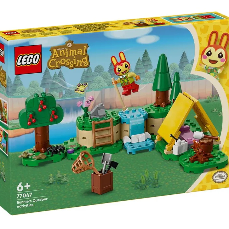 Pack de la colección Lego Animal Crossing, compuesto de 164 piezas, con las que podrás construir el playset de actividades al aire libre de Coni. Podrás montar su tienda de campaña antes de salir a explorar el mundo de Animal Crossing. Contiene una red para cazar bichos, la pala, el hacha, herramientas que se reconocen de los videojuegos. Contiene un mecanismo que permite a Coni atravesar el río usando una pértiga. Recomendado a partir de 6 años.