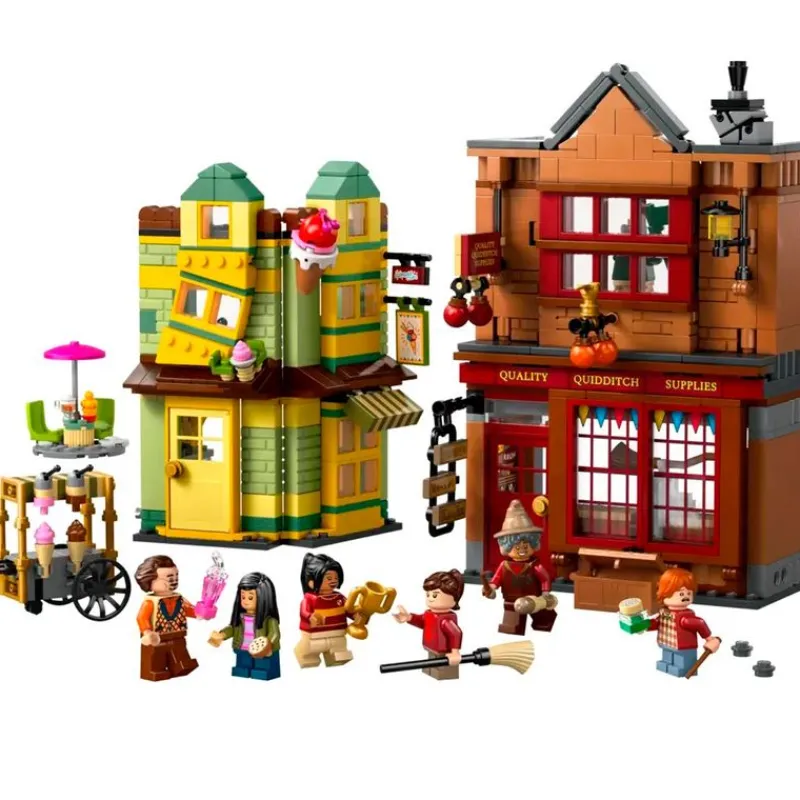 Pack de la colección Lego Harry Potter, compuesto de 795 piezas, con las que podrás construir las tiendas de Artículos de Calidad de Quidditch y la heladería de Florean Fortescue.