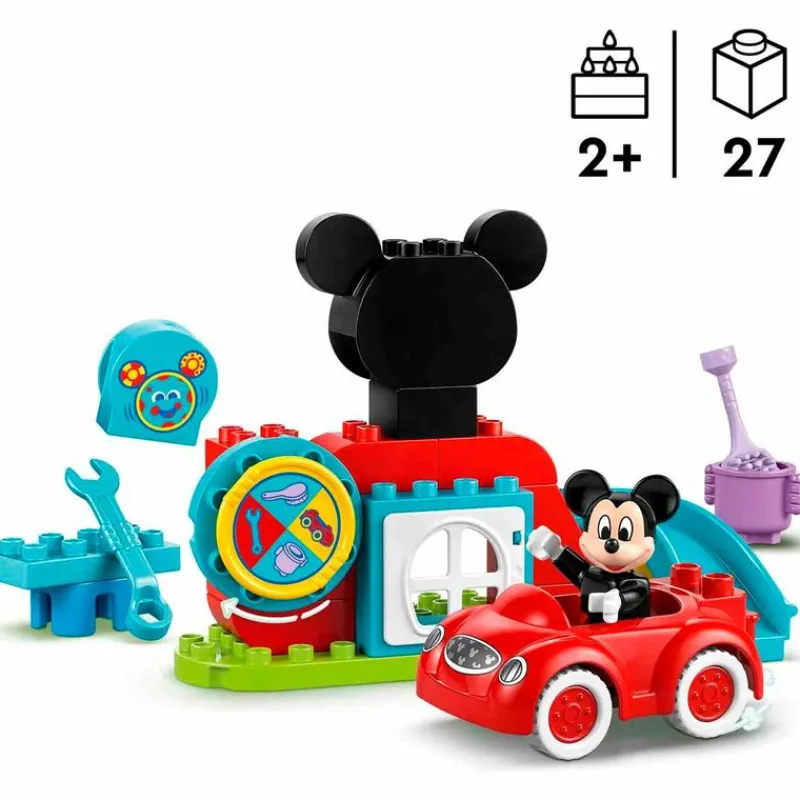 Pack de la colección Lego Duplo, compuesto de 27 piezas, con las que podrás construir la casa de Mickey Mouse y su coche.