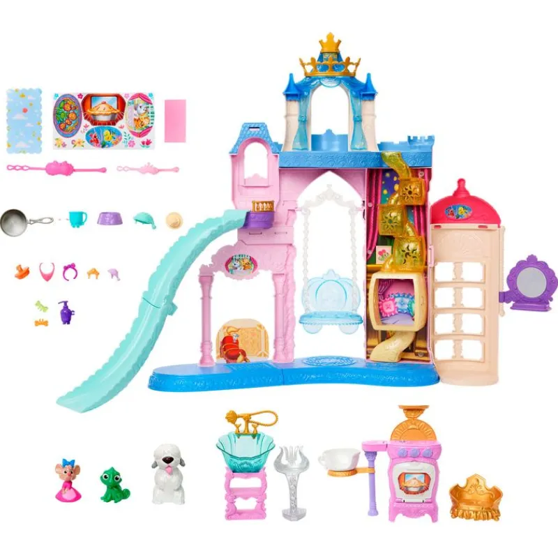 Inspirado en las películas animadas de Disney, el conjunto de juego Palacio de mascotas de Disney Princesas está repleto de adorables animalitos, muebles y accesorios.