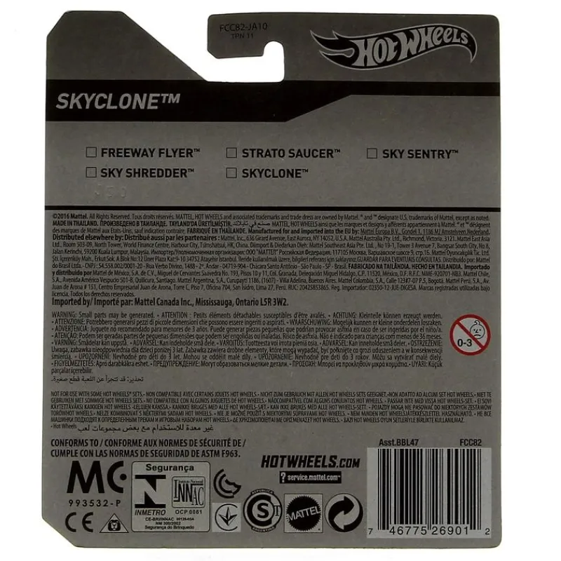 Modelo Sky Clone de la colección Sky Buster de Hot Wheels. El vehículo es de color verde con las hélices azules. Escala 1:64.