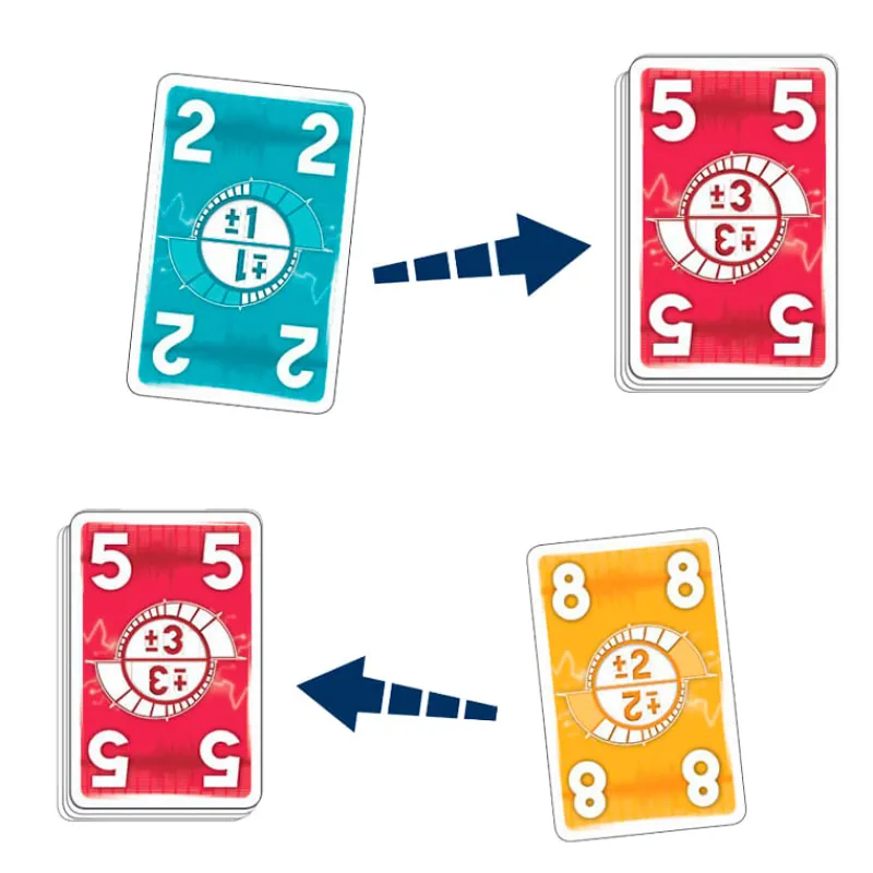 Alto voltaje es un Juego de habilidad mental, rápidos reflejos y de gran intensidad. La dinámica es sencilla en la parte central se coloca una carta con un valor numérico que puede sumar o restar, hay que buscar una de tus cartas que sea el resultado de dichas operaciones, en el menor tiempo posible. Rápido, el primero que se quede sin cartas ganará. Competición al máximo. De 2 a 4 jugadores. Duración 15 minutos. A partir de 8 años.