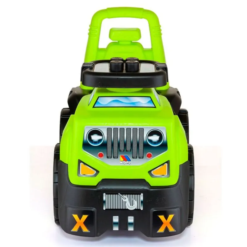 Correpasillos Suv 3 en 1 amarillo de la colección Molto. Tiene forma de todoterreno y los más pequeños de la casa lo podrán utilizar de 3 maneras diferentes. Como correpasillos para correr sin parar por casa o en la calle. Como andador, gracias a su soporte lumbar el cual sirve de apoyo para dar sus primeros pasitos y como juego de bloques, en el maletero descubrirás bloques de colores. Sus dimensiones son de 43.50 cm de alto x 57 cm de largo x 30 cm de ancho aproximadamente. Recomendado hasta los 36 meses.