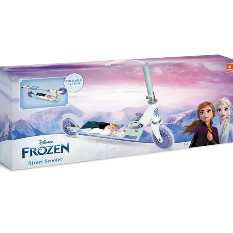 Patinete infantil de 2 ruedas con diseños inspirados en las películas de animación de Frozen. Está fabricado en aluminio resistente y un sistema de plegado para que puedas llevarlo contigo a todas partes. Además, dispone de freno para que puedas controlar la velocidad del patinete. El manillar se regula en altura. De 68 cm a 77.5 cm aproximadamente. Las ruedas están fabricadas en poliuretano con 120 mm de diámetro. Soporta un peso máximo de 50 kg aproximadamente. Recomendado a partir de 3 años.