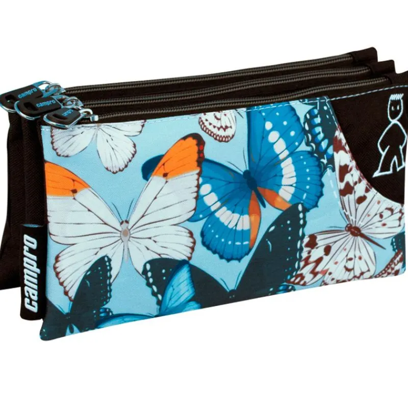 Portatodo triple con 3 compartimentos en los que guardar tus accesorios escolares. Sus dimensiones son de 12 cm x 23 cm x 3.5 cm aproximadamente.