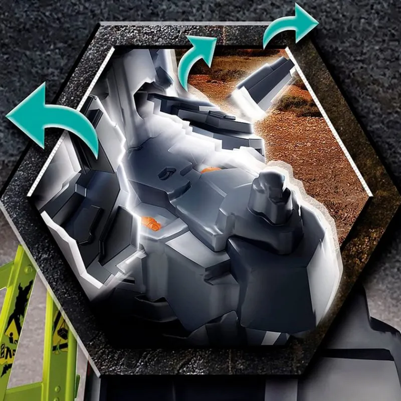 Dino Rock es un playset de la colección Dino Rise. La casa del árbol sirve como base de operaciones de los adolescentes. En un escondite bien camublado en la pared se roca, planean su estrategia de defensa. Se abastecen de suministros y herramientas a través del montacargas giratorio. Dispone de un puernte basculante que conduce a un escondite secreto en una cueva. El pack incluye las figuras del Team Dino Rise, Ian Ludmilla y Ralph, un Stegosaurus, un laboratorio de pruebas con estación de análisis, piedras de energía, un vehículo de perforación, una rosa de dinosaurio con funciones a luz, sonido y vibración y muchos más. Recomendado a partir de 5 años.