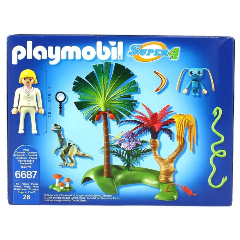 Isla Perdida con Alien, Raptor y también con el agente Dallas de Tecnópolis. Armado con su boomerang, llega la figura Alien de Super4 para ganar todas las batallas.