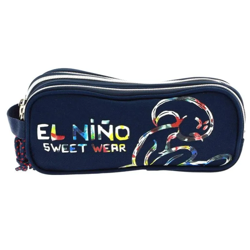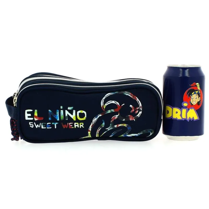 Estuche triple de la colección ‘el Niño’. De color azul oscuro y con 3 compartimentos distintos en los que organizar todo tu material. Sus dimensiones son de 21 cm x 7 cm x 8.5 cm aproximadamente.