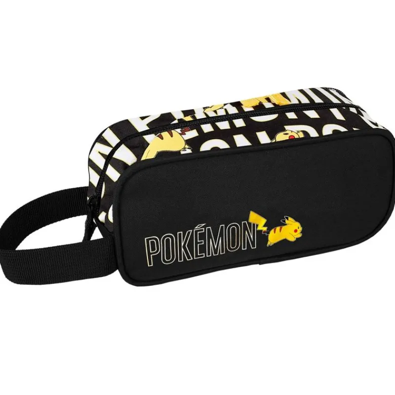 Portatodo escolar con diseños inspirados en el videojuego Pokémon. Dispone de un compartimento para guardar tus accesorios escolares y un asa. Sus dimensiones son de 24 cm x 10 cm x 11 cm aproximadamente.