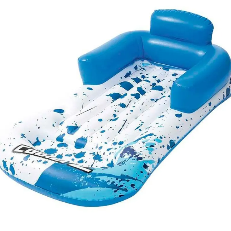 Colchoneta para la piscina o playa en forma de sillón con respaldo, posabrazos y posavasos para tu bebida. Dispone de dos cámaras de aire y estructura de gran firmeza. Tiene unas dimensiones de 189 cm x 79 cm aproximadamente.