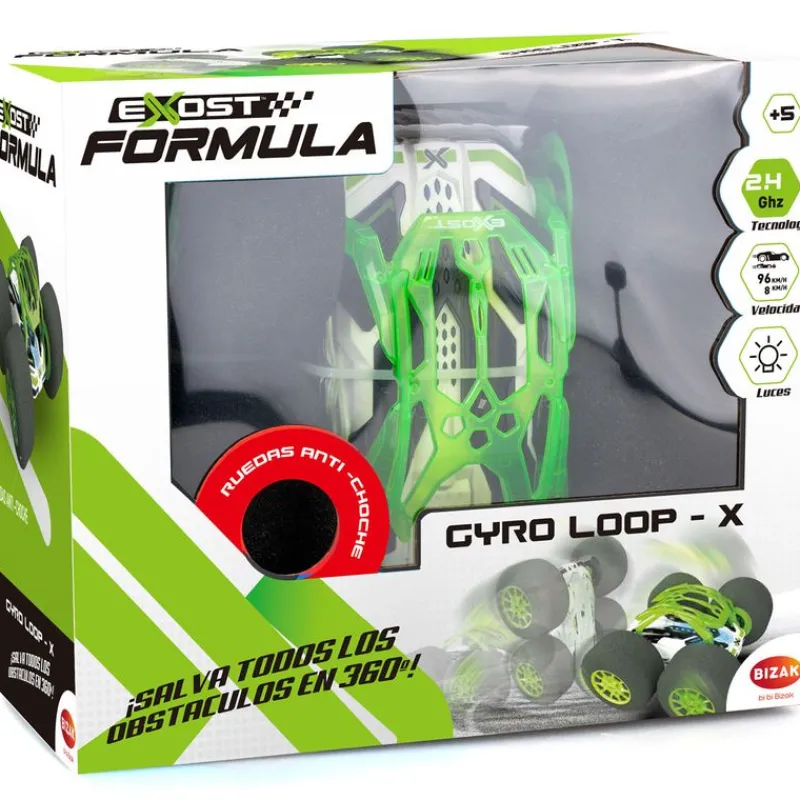 Gyro Loop es un vehículo de la colección Exost con el que podrás hacer increíbles acrobacias con neumáticos de amortiguación extrema. Con control de 2.4Ghz.Fabricados con material de espuma, absorben impactos, y son súper ligeros. Cada acrobacia, cada giro, cada voltereta es especial gracias a los efectos de luz de la carrocería. Puede conducirse por ambos lados. Funciona con Batería 3,7 V ( Incluida) y 2 Pilas AAA (NO incluidas) Recomendado a partir de 5 años.