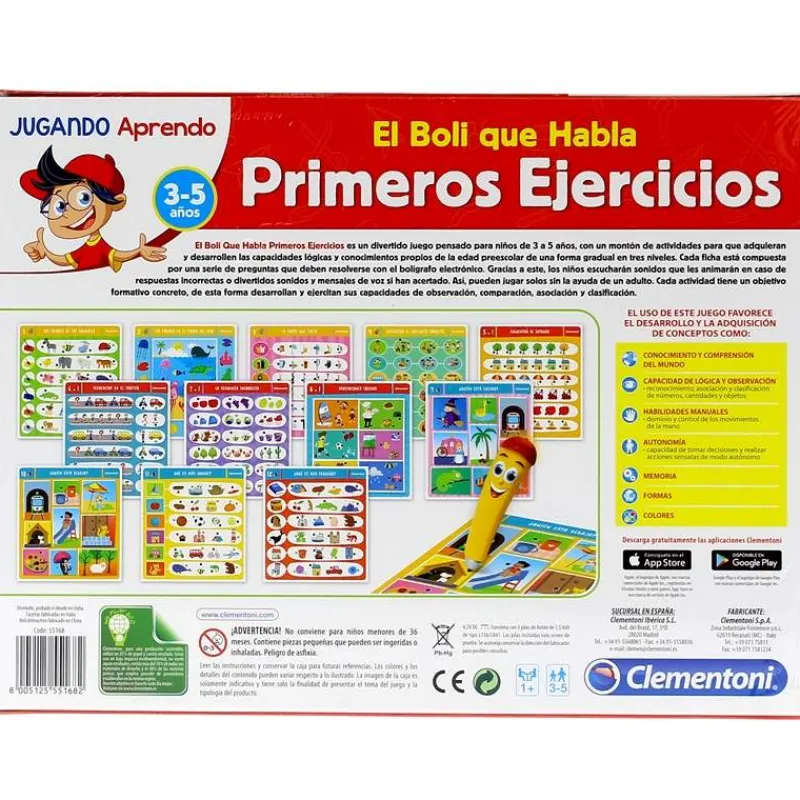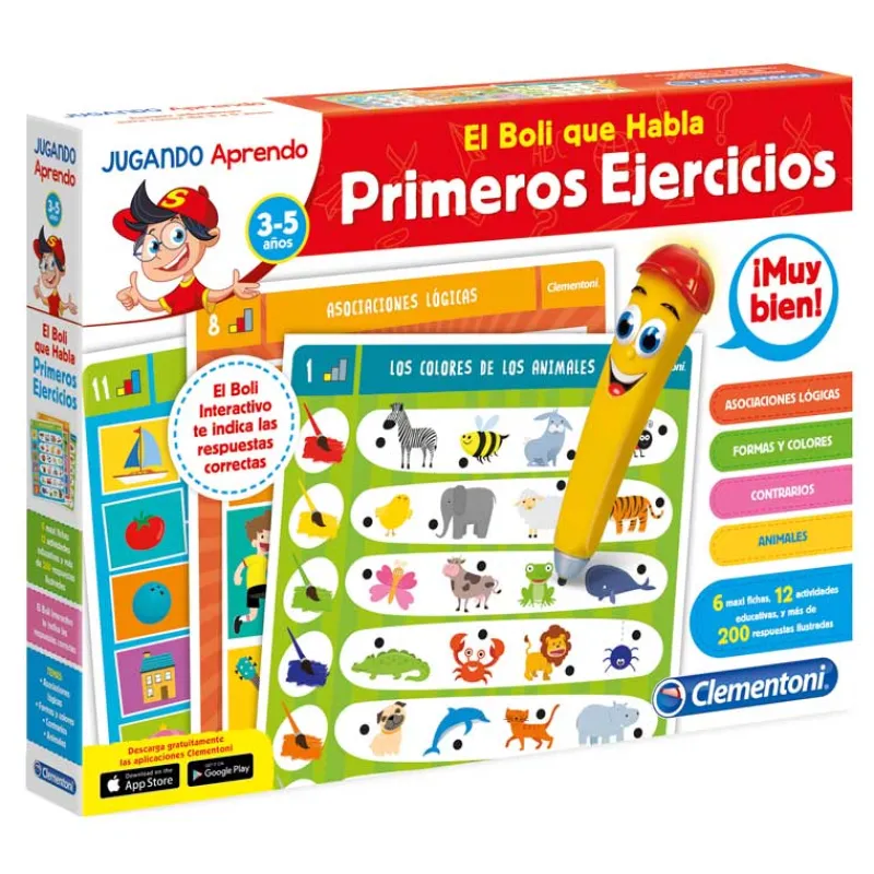 Divertido Boli Interactivo con 12 actividades educativas. Aprenderán asociaciones lógicas, las formas y colores, los contrarios y los animales. El set incluye 6 maxi fichas y más de 200 respuestas ilustradas.