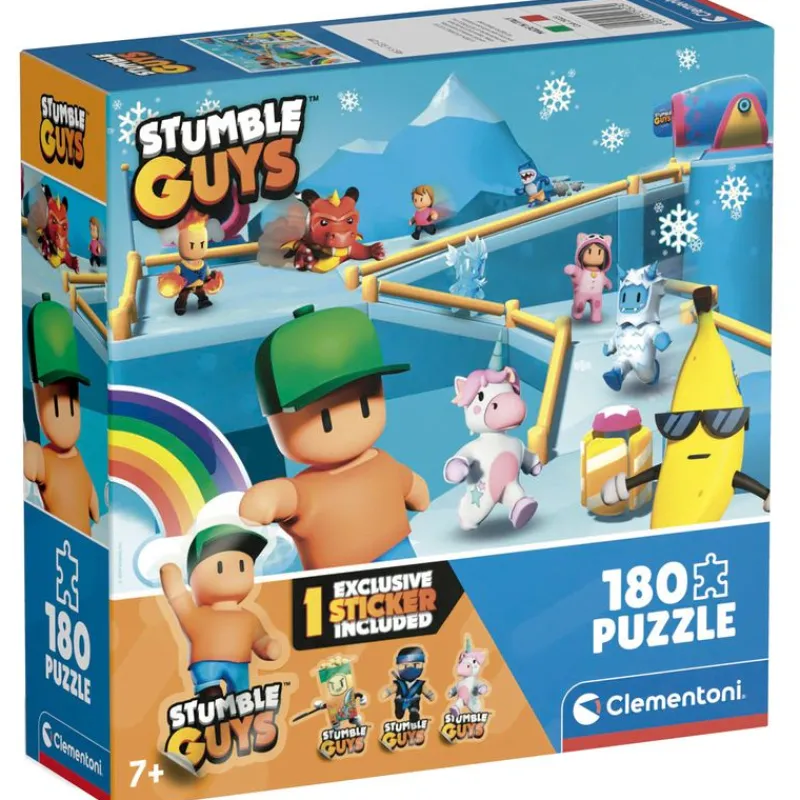 Puzzle compuesto de 180 piezas inspirado en el videojuego Stumble Guys, en el interior encontrarás un sticker sorpresa. Recomendado a partir de 7 años.