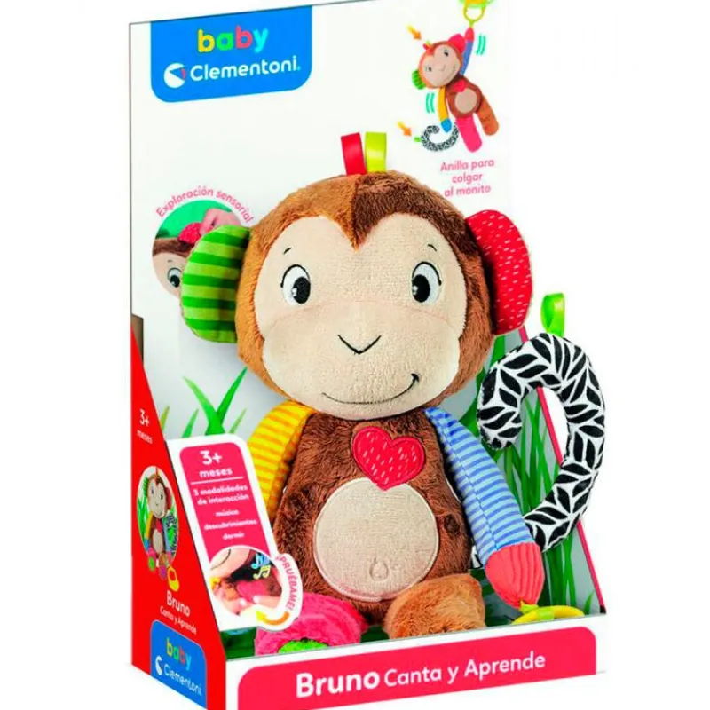 Bruno canta y aprende es un adorable peluche en forma de monito que estimulará la curiosidad de los más pequeños de la casa. Bruno les guiará, con su voz, a descubrir las diferentes partes del cuerpo y con canciones estimula el balbuceo y lenguaje. Dispone de funciones interactivas y 3 modos diferentes de juego. Recomendado a partir de 3 meses.