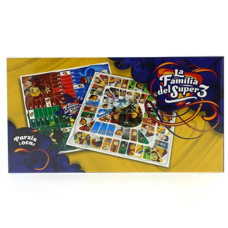 Juega con los personajes de La Familia del Super3 por una cara del tablero al parchís y por la otra al clásico juego de la Oca pero al estilo Super3.