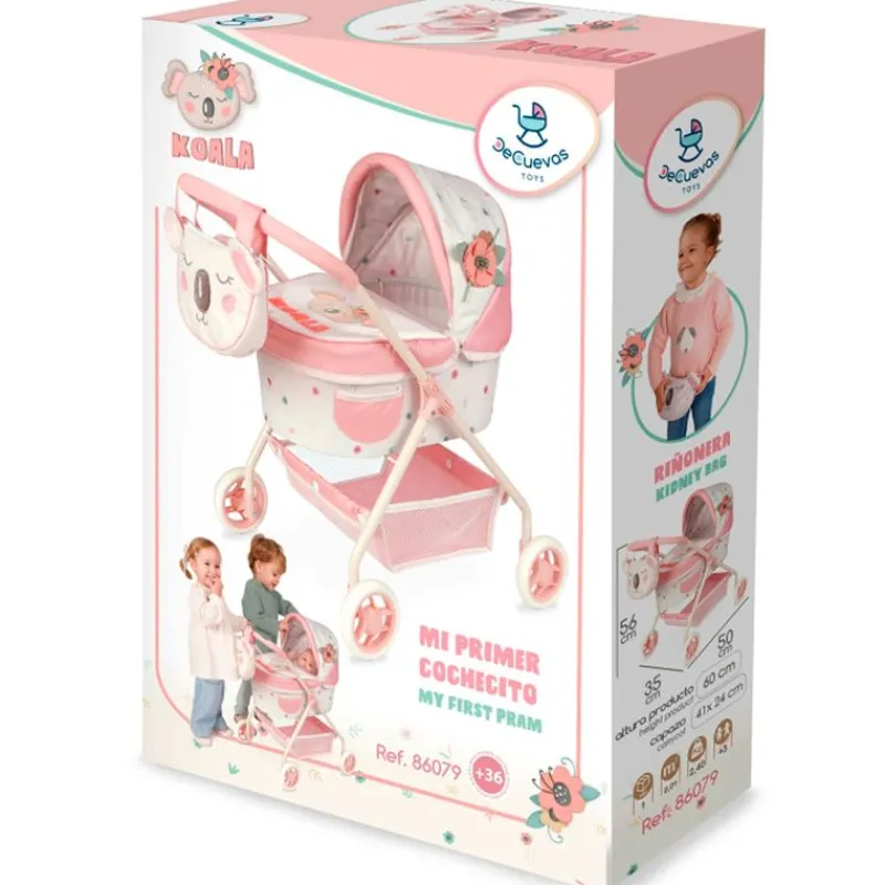 i primer carro de muñecas Coco de DeCuevas. Con bandeja inferior de tela portaobjetos, ruedas con cubierta de foam silencioso, manillar acolchado, capazo rígido, capota extensible y bolso para el carro a juego. El carro tiene unas dimensiones de 56 cm de alto x 35 cm de ancho x 50 cm de largo. Las dimensiones del capazo son de 41 cm de largo x 24 cm de ancho. Ideal para muñecas bebés de hasta 42 cm de largo NO incluida. *Nota: para ver si el carrito puede venirle bien en altura, mida desde el suelo hasta el codo de la niña y comparelo con la altura del manillar. Recomendado a partir de 3 años