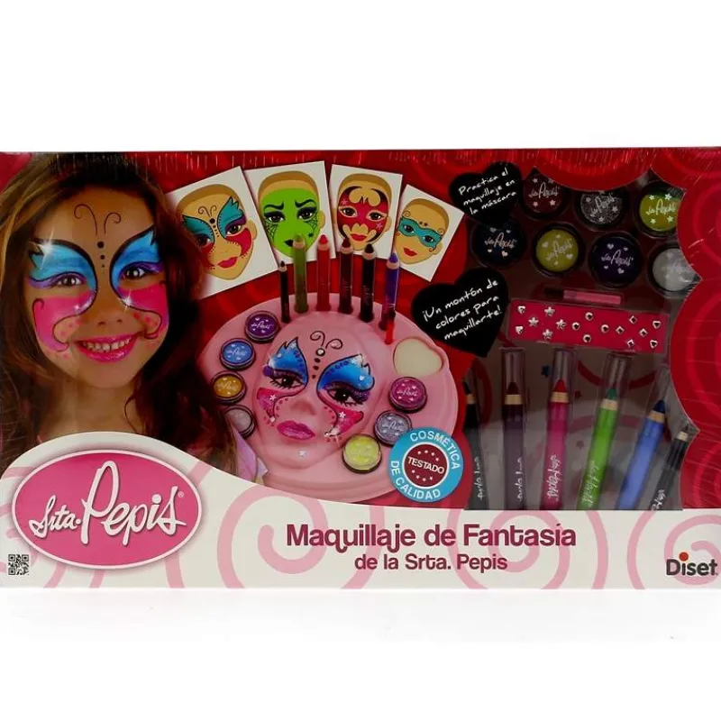 Completo centro de maquillaje de fantasía para que las niñas luzcan originales y divertidos maquillajes. Con este completo set, las niñas aprenderán practicando en la máscara y después se lo podrán aplicar a ellas mismas. La pintura es totalmente apta para aplicar sobre la piel, se retira fácilmente con agua y jabón.