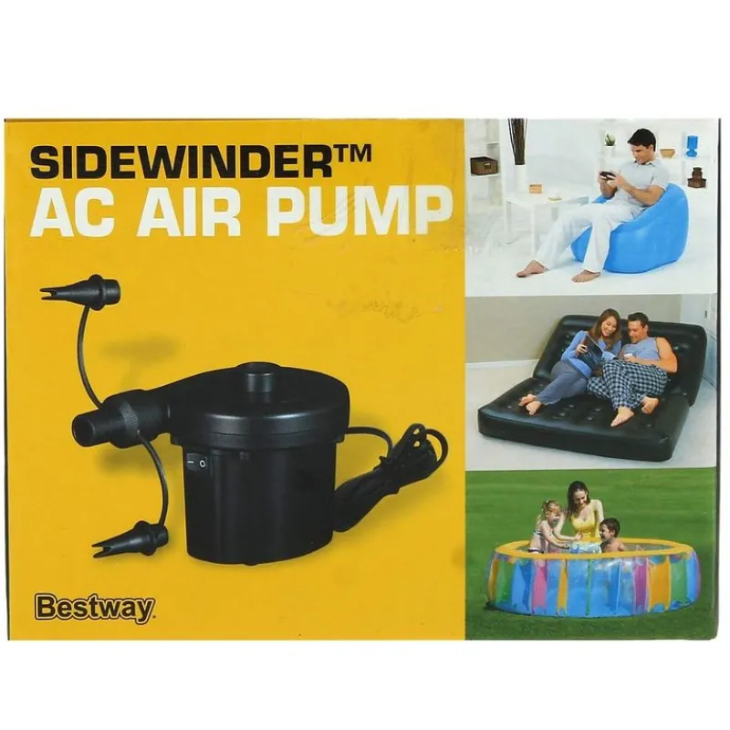 Hinchador eléctrico de 220V con distintos adaptadores para diferentes válvulas de hinchado (colchonetas de agua, piscina, colchones hinchables, etc.) y función de hinchado y deshinchado.
