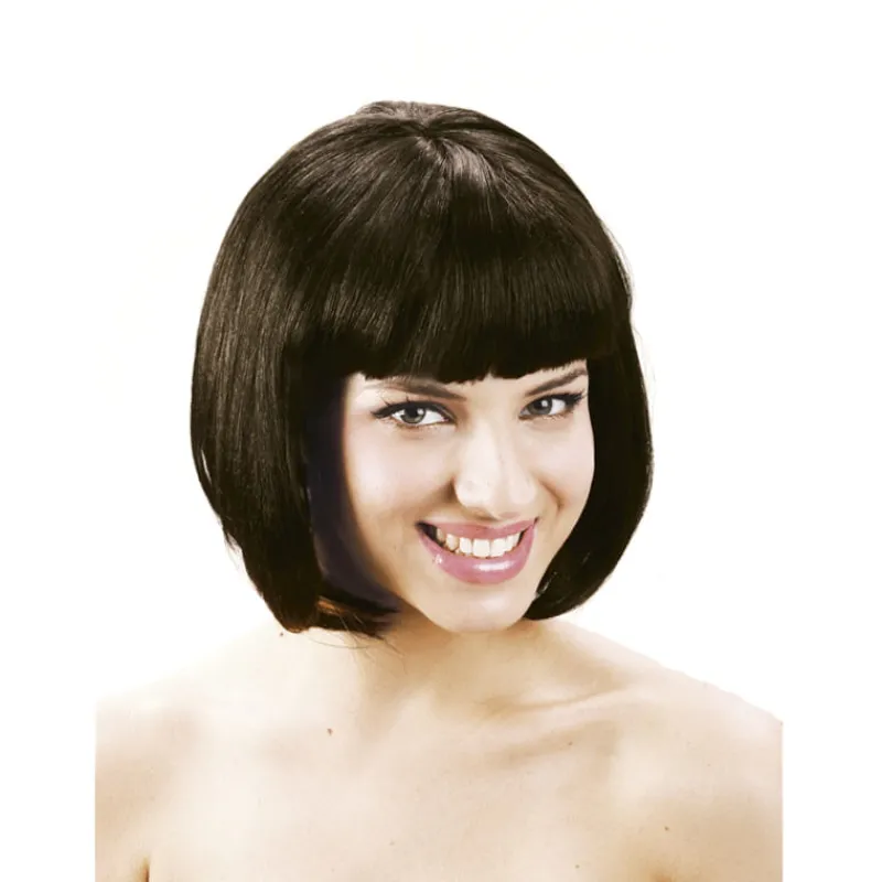 Peluca morena y corta tipo Bob. Un look ideal para tu disfraz. Talla única.