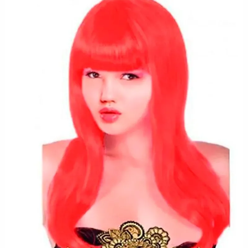 Peluca larga lisa de color rojo para que puedas completar tu disfraz de carnaval. NO incluye accesorios o disfraz.