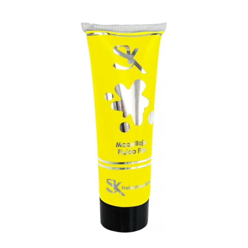 Tubo de maquillaje facial de 22 cc en color amarillo. Fácil de retirar con agua y jabón.