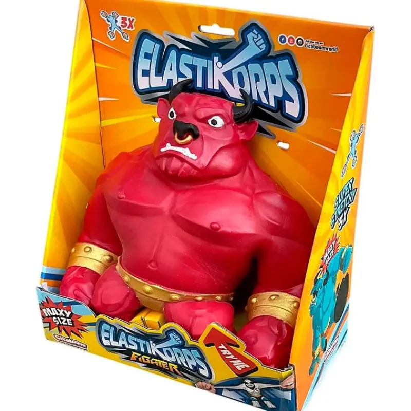 Toro Rojo de la colección Elastikorps que podrás estirar 3 veces más de su tamaño original, enrollarlo o incluso estrujarlo ¡Siempre volverá a su forma original!