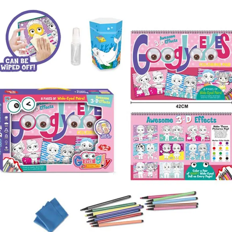 Pack en el que encontrarás láminas con divertidos efectos 3D que podrás pintar con los diferentes colores incluidos y que podrás limpiar para volver a empezar.