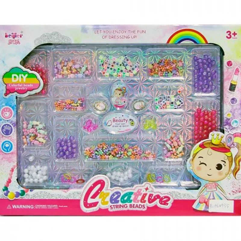 Pack en el que encontrarás montones de abalorios de diferentes formas y colores para poder crear tus pulseras o collares favoritos. Recomendado a partir de 3 años.