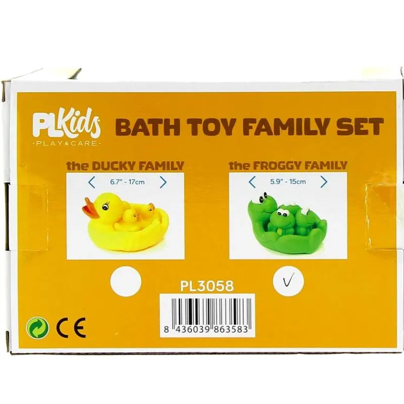Familia de ranitas acuáticas para jugar en la bañera, y ahora que llega el verano, para jugar tambien en la playa o en la piscina. Mamá rana tiene forma de «barca» y dentro están las tres ranitas removibles. Fabricado en PVC.