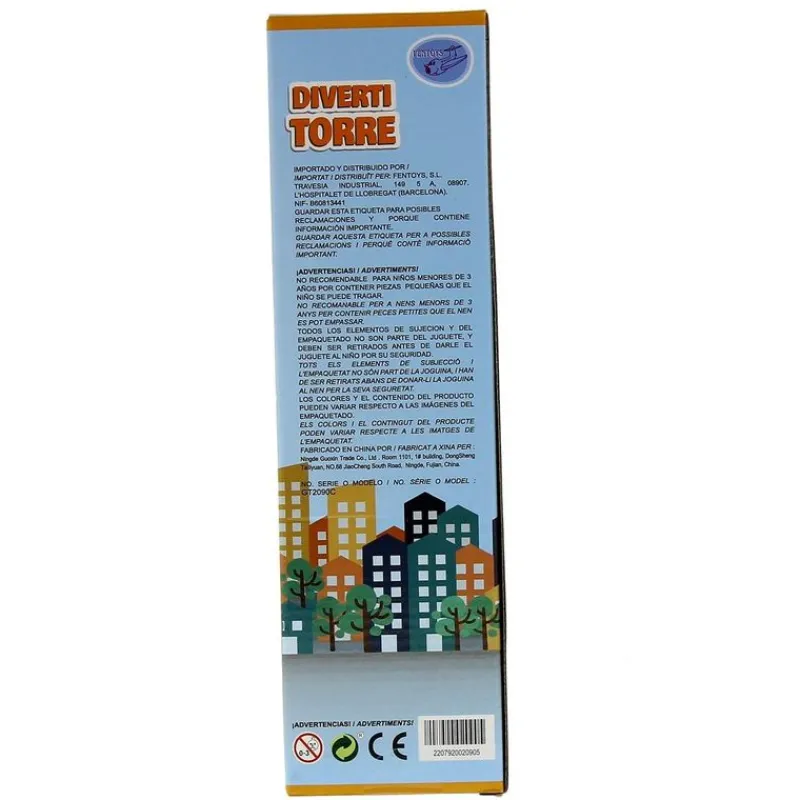 Piezas de madera con diferentes colores, para construir la torre mas alta. El objetivo del juego es sencillo, concéntrate y retira despacio y con gran habilidad las piezas sin que la torre caiga. Ganarás el juego si eres el último jugador en quitar la pieza antes de que la torre se derrumbe. Para 2 jugadores o más. Recomendado a partir de 3 años. Contiene 57 piezas.