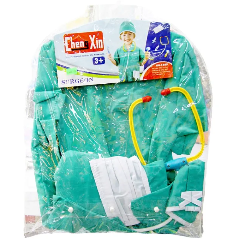 Set infantil con el que podrás jugar e imaginar ser un cirujano. Incluye vestimenta y accesorios quirúrgicos. Tamaño recomendado para 3 a 7 años.