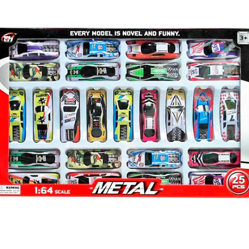 Pack en el que encontrarás 25 coches de carreras con una escala de 1:64. Recomendado a partir de 3 años.
