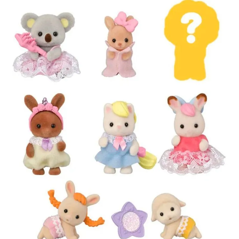Sobre sorpresa de la colección Sylvanian Families que contiene un bebé con accesorios y ropa exclusiva.
